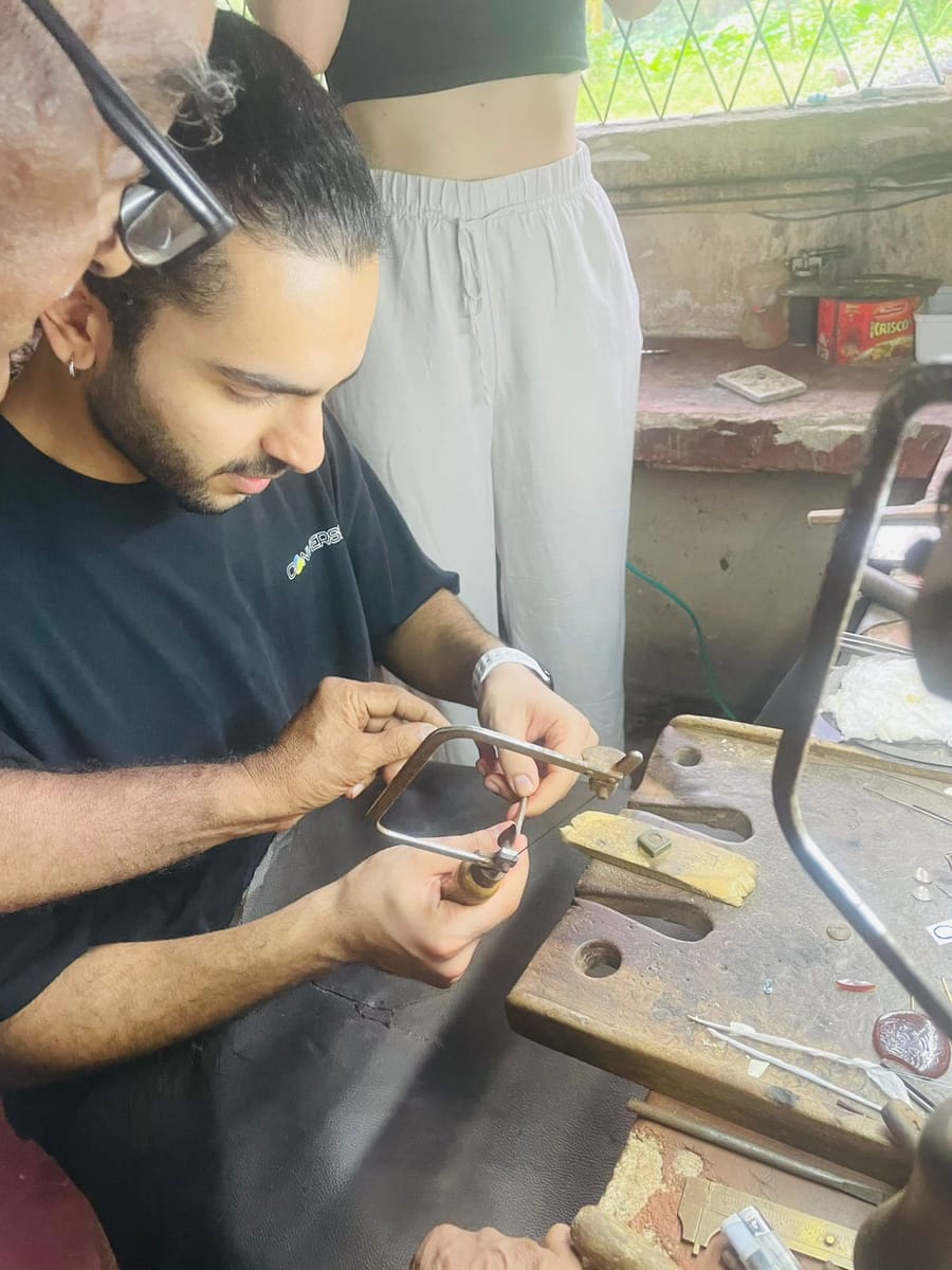 Join us to start your journey by first learning the crucial difference between fake and genuine gemstones. Next, you'll witness, and even assist, as raw silver is melted down in the small furnace—a truly traditional spectacle. You will then get hands-on, using traditional tools to measure, shape, and hammer the silver into your desired design before moving on to the intricate steps of soldering and finishing. The best part? You'll walk away with a unique, handcrafted piece of jewellery that you created yourself by paying factory price!
