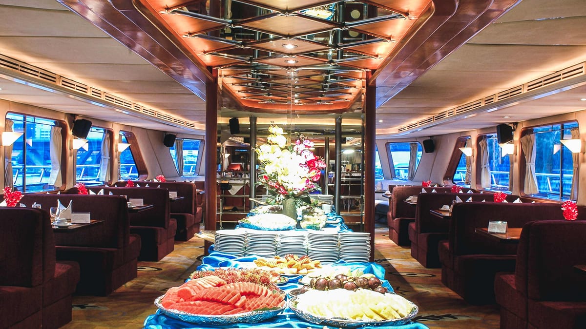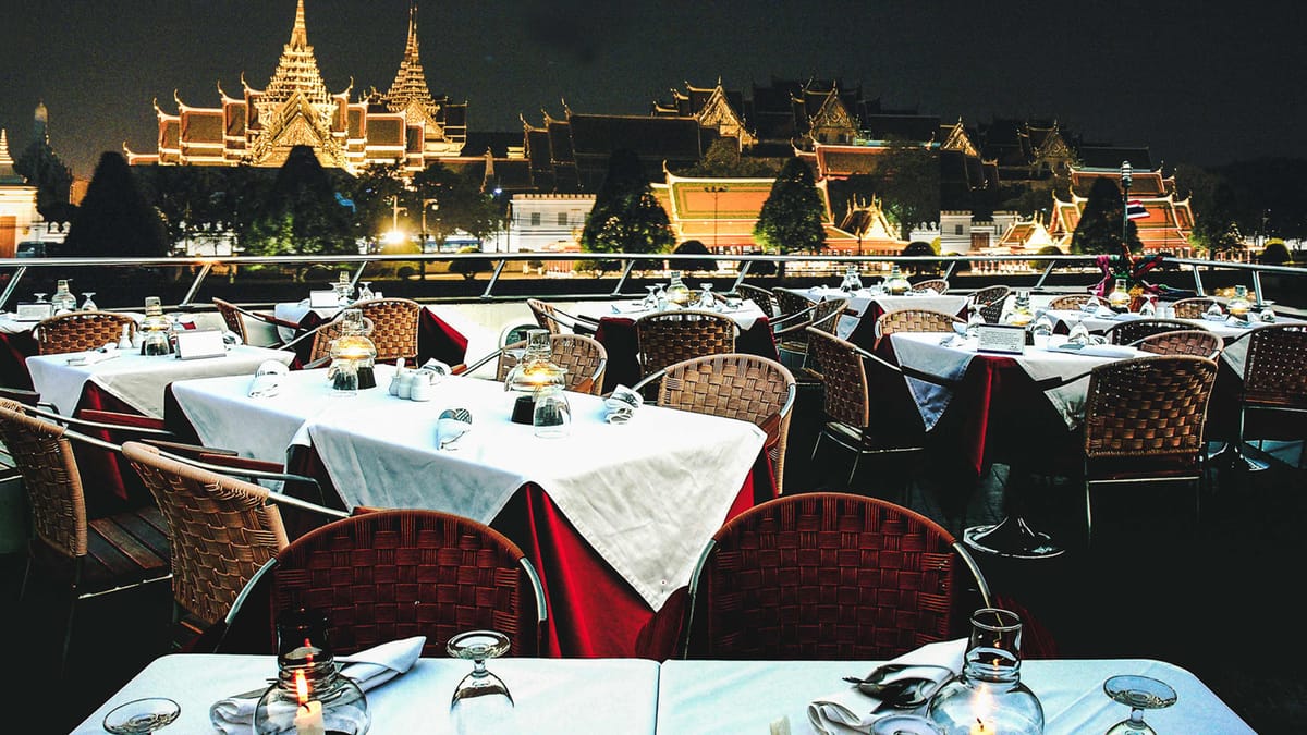The captain will skillfully steer the cruise ship past Wat Arun, the Grand Palace and more - giving you plenty of time to take photos and soak up the beautiful skyline. At 8:00pm, a delicious buffet dinner will be served, featuring dishes from both Thai and international cuisine, followed by a classical Thai dance show and live music. Perfect for couples or special occasions, this Chao Phraya cruise is guaranteed to be one of your most memorable experiences in Bangkok.