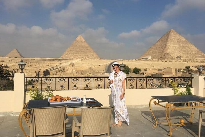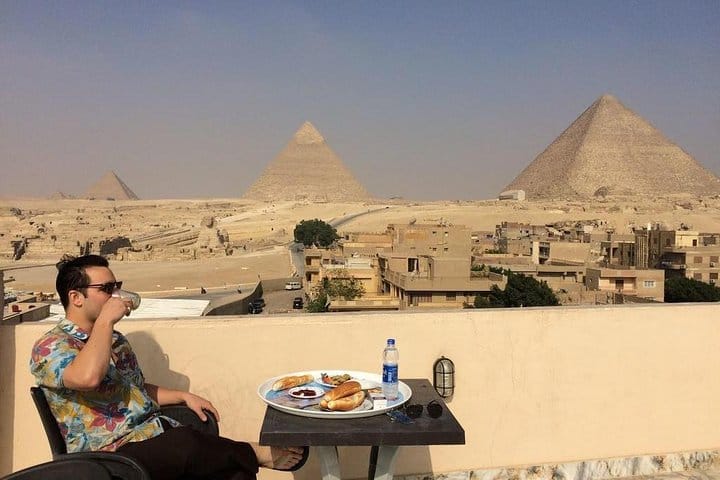 tamer safari Tours representative will pick you up from your hotel in Cairo or Giza and transfer you to The Great Pyramid Inn where you will have the opportunity to enjoy an extraordinary Lunch in Egypt. The Great Pyramid Inn is a hotel overlooking the Great Pyramids of Giza directly that makes you feel as if you went back in time,It is an overwhelming experience. After enjoying your lunch, you will be transferred back to your hotel.
