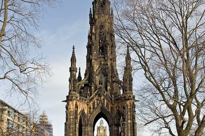 Begin your walk at the towering Gothic spire dedicated to Sir Walter Scott — Scotland’s most famous author.