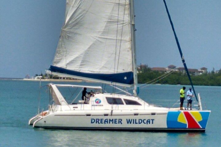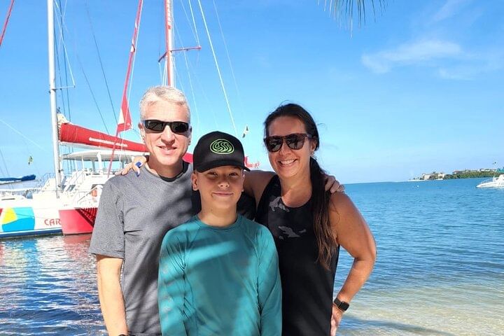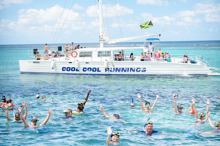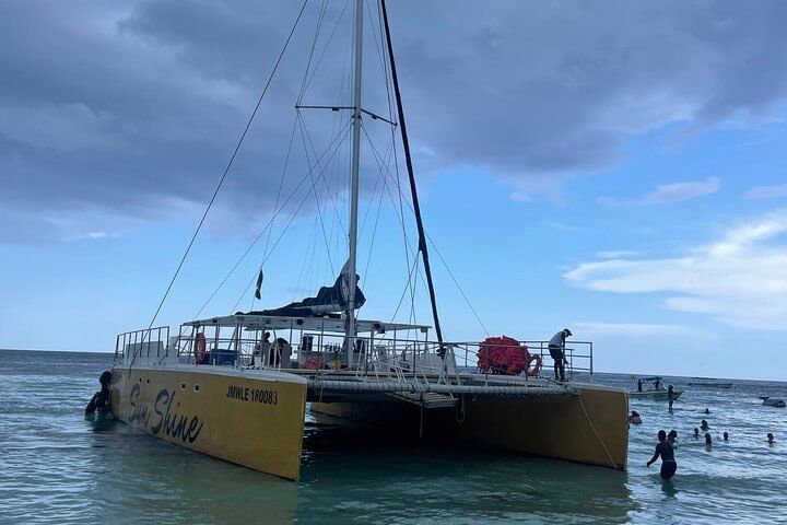 Basically this family friendly tour is perfect for a birthday. Cruise to Dunn's River Falls aboard a catamaran on this 3.5-hour excursion. Sail to a snorkeling location to swim among live coral reefs and schools of tropical fish. Dig in to a beachside buffet of traditional Jamaican food accompanied by an open bar. At Dunn's River Falls, climb the terraced falls to the top, accompanied by your local guides, for views of the surrounding countryside. Lunch, open bar, snorkel gear and round-trip hotel transportation are included. Not available for clients from Carnival Corporation. All-inclusive tour Hotel pickup included Vegetarian meal option available Travel by boat and see the sights from the water What's Included
