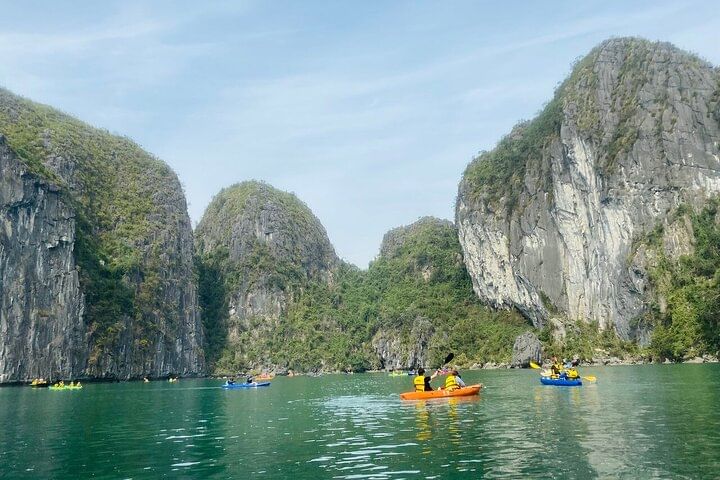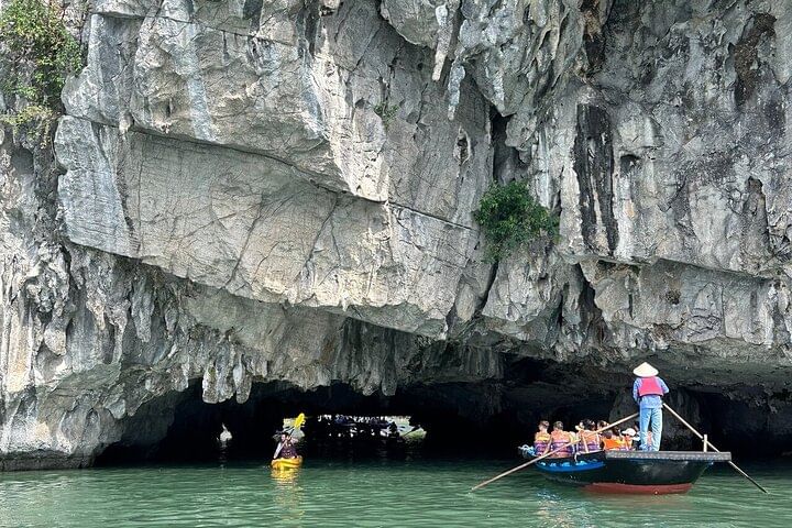 The boat will move to Hangluon (three tunnels) area, a water cave for kayaking, rowing bamboo boat or just stay on board for relaxing and the boar will slowly moving around to sightseeing more on the bay.