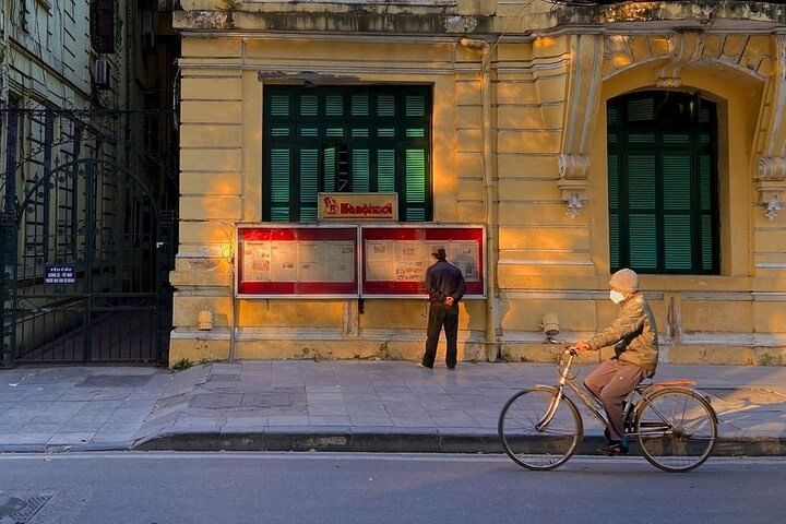 As the city awakens, we begin our visual odyssey at the New Hanoi newspaper office, where we'll frame the serene beauty of Hoan Kiem Lake. From there, we step into history, framing the majesty of St. Joseph Cathedral and the charming French colonial streets adorned with Vietnamese flags