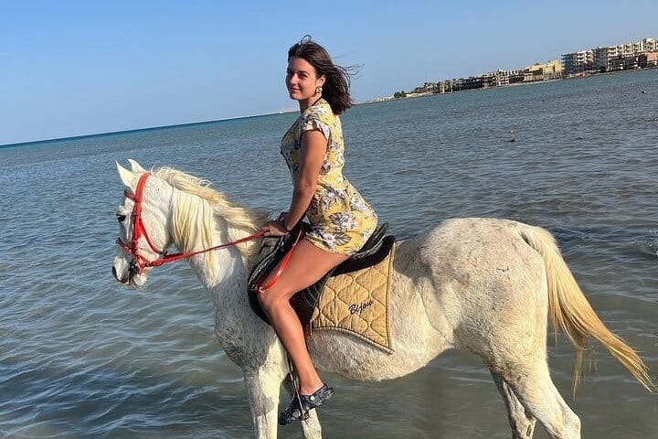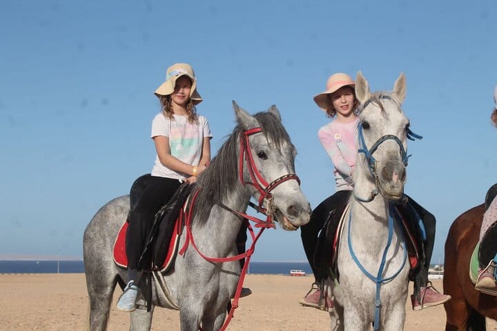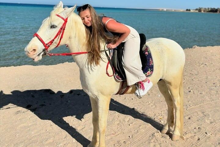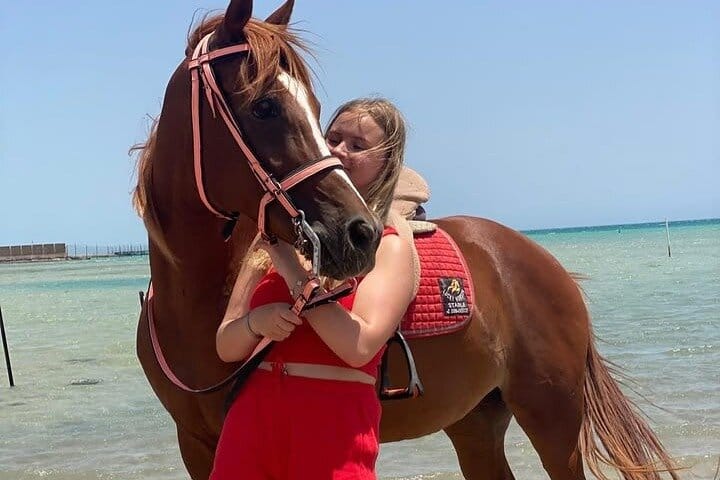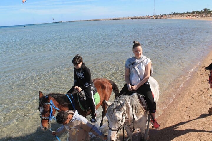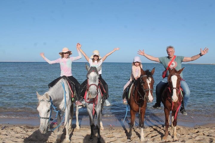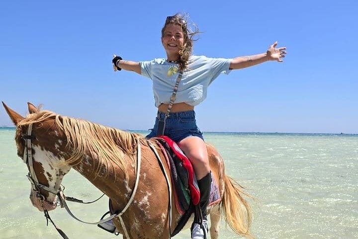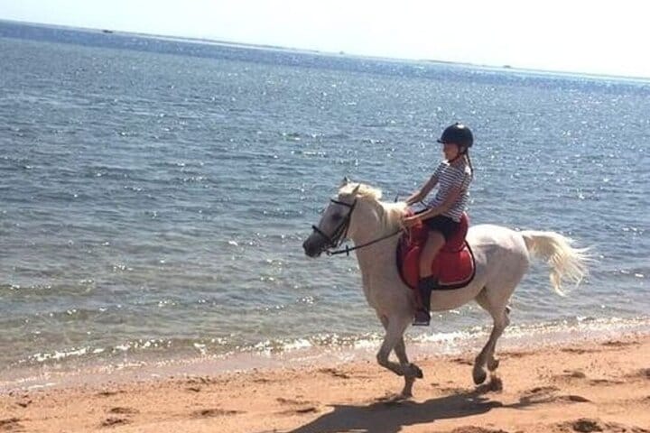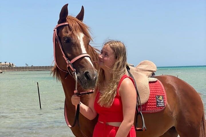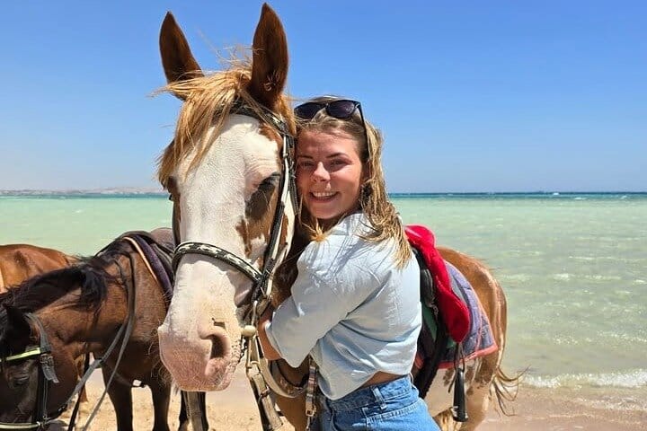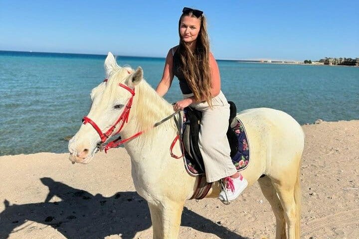 Ride along the Red Sea's beautiful coastline in Hurghada on horseback! Enjoy a scenic beach and water ride with hotel transfers included, perfect for all experience levels. A unique and memorable seaside adventure!
