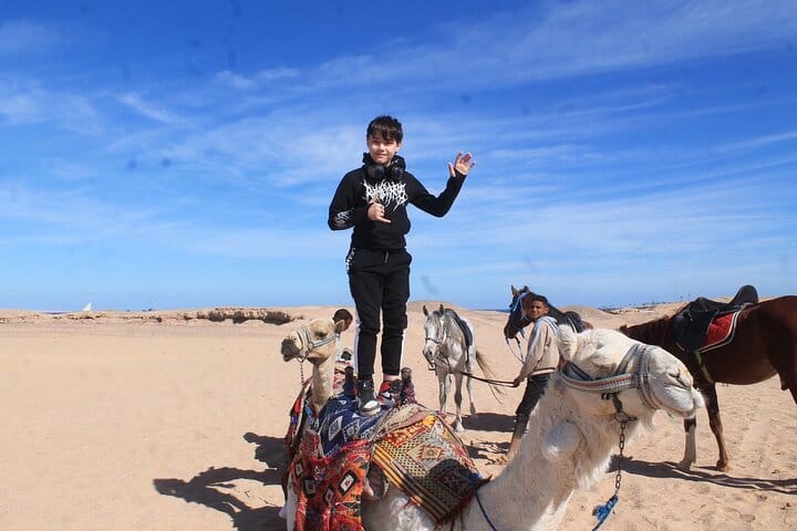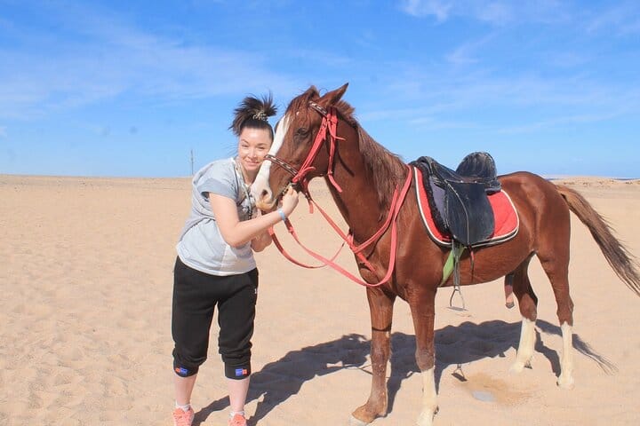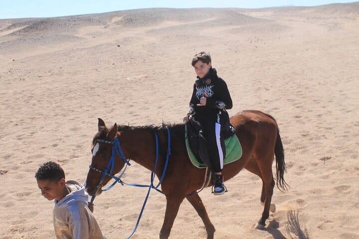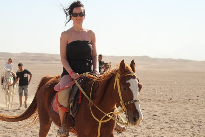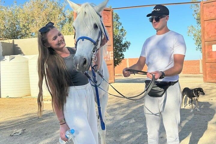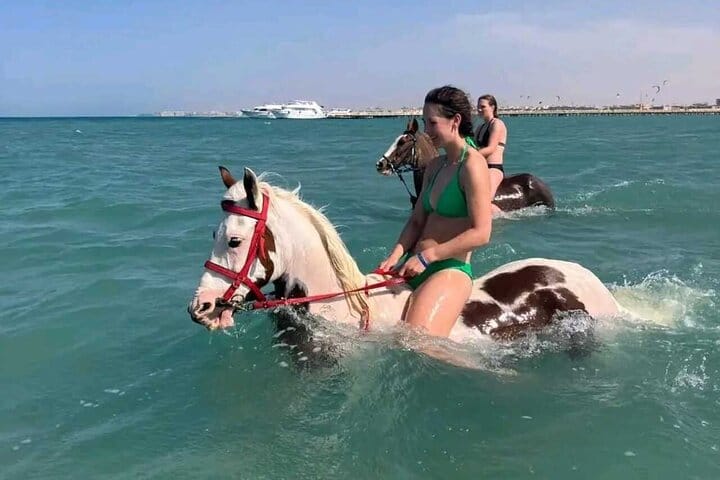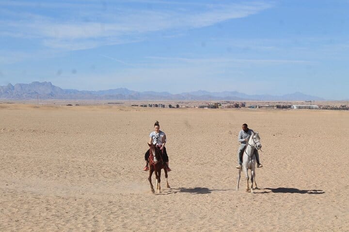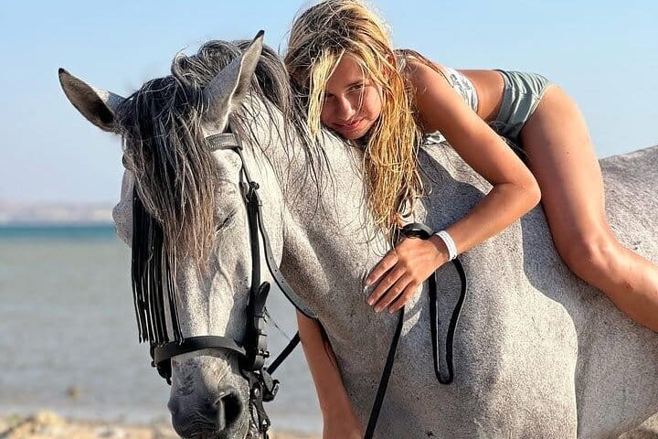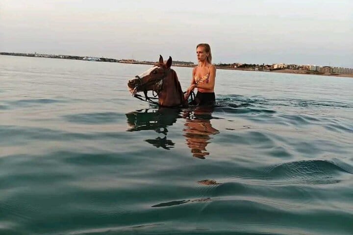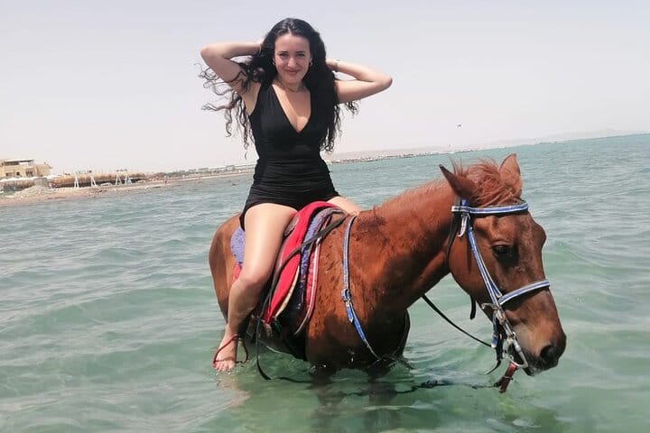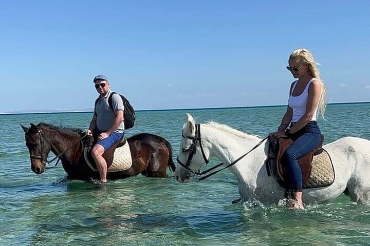 Ride along the Red Sea's beautiful coastline in Hurghada on horseback! Enjoy a scenic beach and water ride with hotel transfers included, perfect for all experience levels. A unique and memorable seaside adventure!