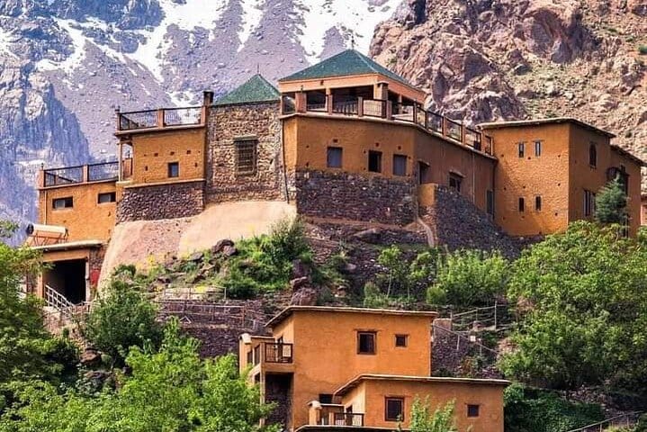 Departure around 09H00 from your accommodation, travel in a comfortable and air conditioned minibus/4WD with an experienced English speaking driver through the majestic Atlas Mountains. Admire towering snow-topped peaks on your 1-hour drive to the first valley of Asni, famous by its lush valley’s are a lovely counterpoint to the surrounding landscape. a short stop to take picture of the atlas mountains and berber villages. (Visit the cooperative of argan oil OPTIONAL) continue your journey through Asni Village where there's a huge local market every Saturday. (If Saturday we can stop to visit the Berber market).