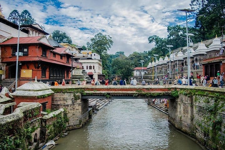 Following your time there, head to Pashupatinath. The sacred Hindu shrine Pashupatinath is located on the bank of the Bagmati river to the eastern side of Kathmandu. Believed to be built by Supuspa Deva, a Licchivi King, Pashupatinath was listed as a UNESCO World Heritage Site in 1979. The main temple of Pashupatinath was built using Pagoda style architecture with four main doors. The two levels of the roof are made of copper with a gold coating and they have a gold pinnacle. The inner sanctorum is the place where the main idol is placed, and the outer sanctorum is an open corridor like space. Though some of the buildings in the Pashupati area are damaged, the main building was untouched by the earthquake of April 25th, 2015 earthquake.