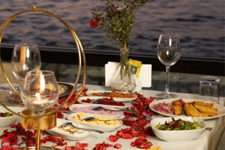 Guests are treated to white-glove service, chef-designed courses, and a romantic ambiance—making it perfect for celebrations, proposals, or a magical night out. Every detail, from the rosehip pastry to the velvet interior, is designed to impress. This is where Istanbul’s culinary tradition meets luxury on the water.