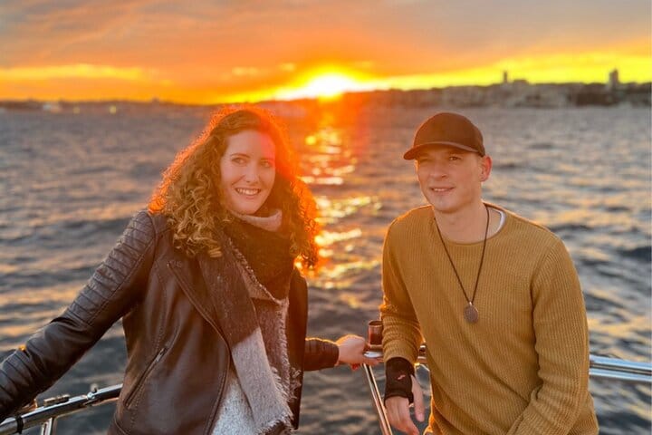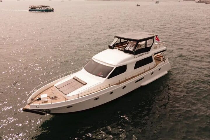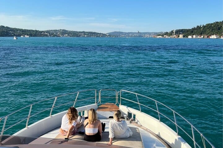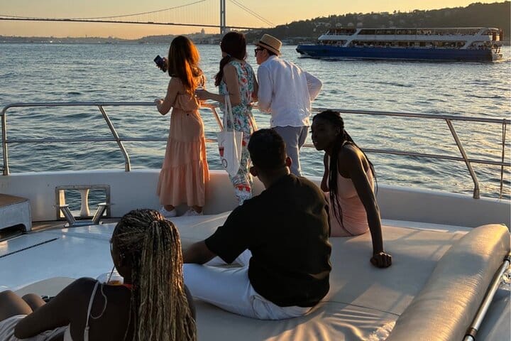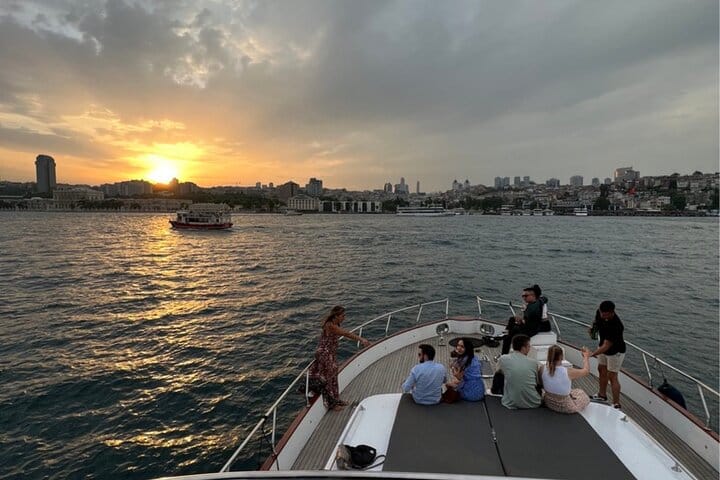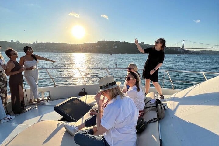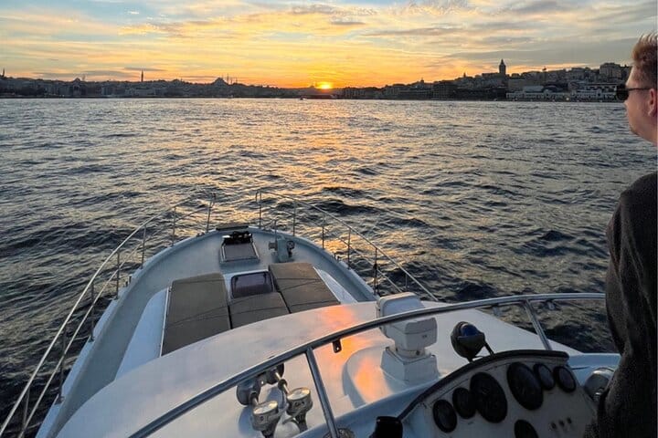Experience Istanbul from the water on a sunset yacht cruise sailing between two continents. Your journey begins at the Karaköy docks, where a local host and professional crew welcome you aboard a 23-meter luxury yacht. After a short introduction, relax on deck as you enjoy panoramic views of the Golden Horn and Bosphorus.