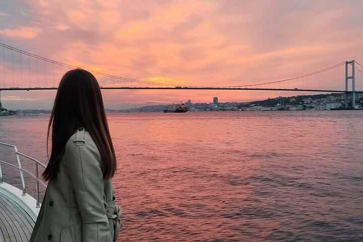 The fascinating sunset atmosphere of the Bosphorus with a 2.5-hour Bosphorus luxury yacht cruise.