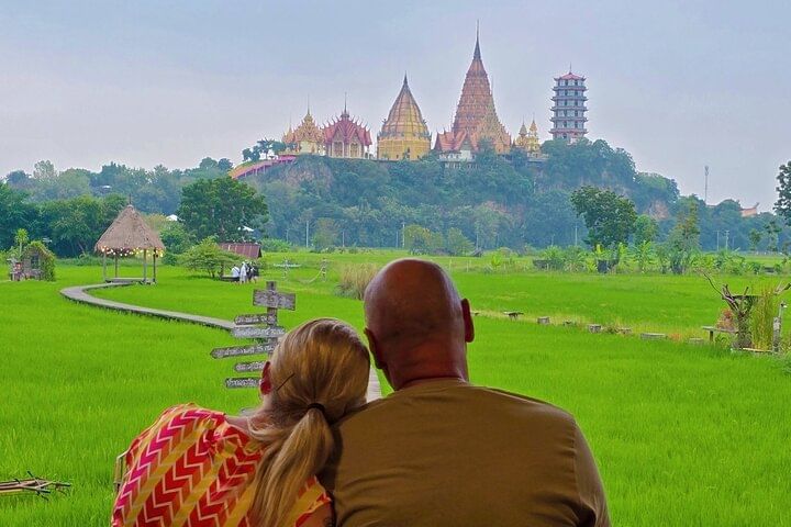 Escape the bustling city of Bangkok and embark on a day tour to Kanchanaburi, a province rich in history and natural beauty. This tour takes you to the iconic River Kwai Bridge, a poignant symbol of World War II, and the stunning Erawan National Park, home to one of Thailand's most beautiful waterfalls.