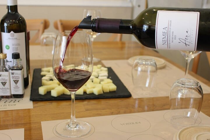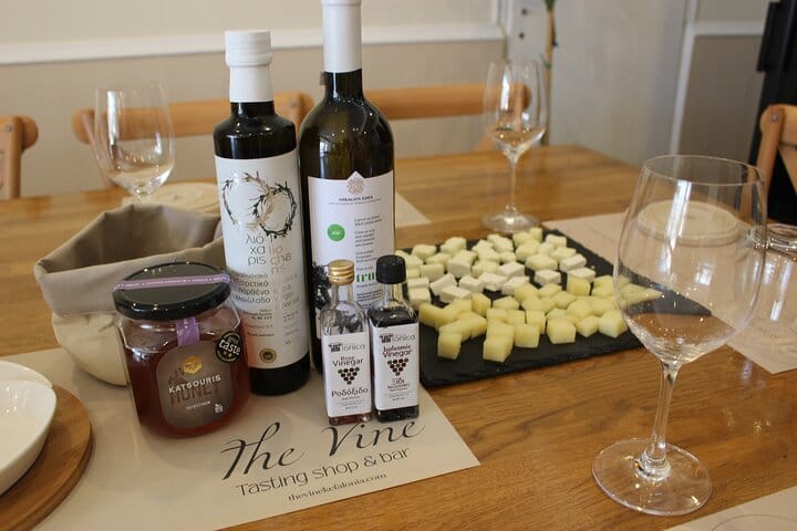 - Local food pairing (bread, cheese, olive oil, or meze assortment)