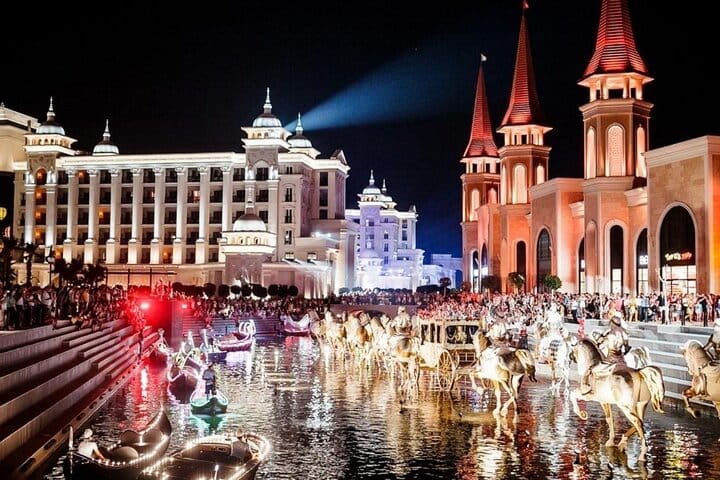 Land of Legends Night Show is approximately 1 hour, this show offers an enchanting escape into a world of captivating sights and sounds. Before the show, take your time to browse the Land of Legends shopping center, where you can find a variety of shops and entertainment options.The Land of Legends is a top destination for an unforgettable night out, especially for families. Children will be thrilled with the mesmerizing performance, and there's ample time to explore the mall for up to 2 hours before the show begins. Be mindful of the return trip schedule provided by your driver.Prepare to be spellbound by the extraordinary musical performance, featuring enchanting melodies and breathtaking light displays. The Chateau's grand architecture comes alive with a stunning array of colors and lights, creating a magical ambiance you won't want to miss. Enjoy an evening of wonder and delight at the Land of Legends Night Show!