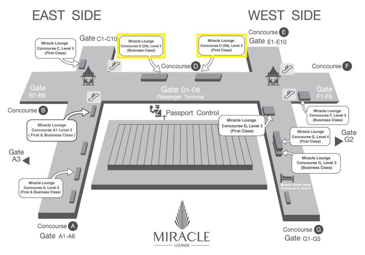 Miracle accommodates up to 250 travellers in comfort in 3,000-square-metre airport lounge located at Suvarnabhumi Airport. The lounge is full of facilities and services which cater to the needs of today's world travellers. These include;