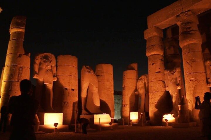 SOUND & LIGHT SHOW AT KARNAK TEMPLE IN LUXOR.Pick up from your Hotel or Nile Cruise in Luxor, a Representative, and transfer you to Karnak Temples to attend the Sound & light show that talks about what it was like thousands of years ago. You will know about them through the splendid Sound and Light Show at the Karnak Temples, the greatest example of worship in history and was dedicated to the God Amon, his wife Mut, and their son Khonsu. It was constructed from the beginning of the Middle Kingdom to the Greco-Roman Kingdom. You will be able to see the Karnak Temples, where you will attend the spectacular Sound and Light production. This spectacle will take about 75 minutes, first takes you around the temple grounds, and finally, the last act is played while you are seated along the Great Sacred Lake. The performance relates the history of Luxor as the capital of the ancient world, That known as Tiba in ancient Egyptian times