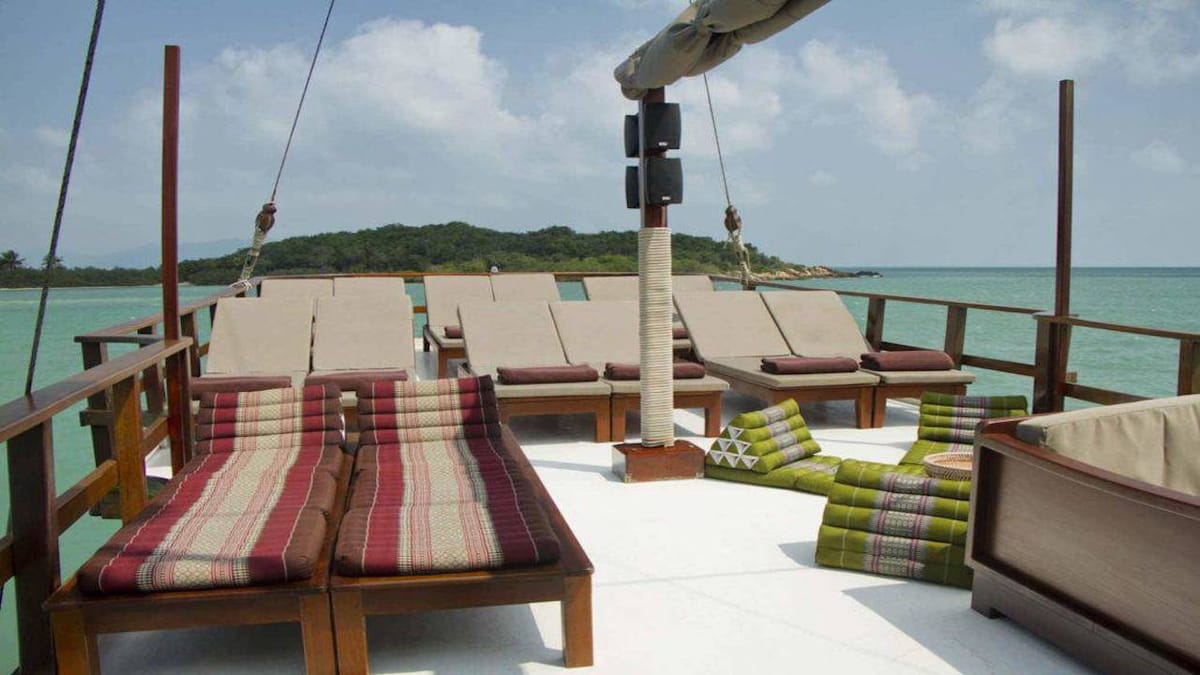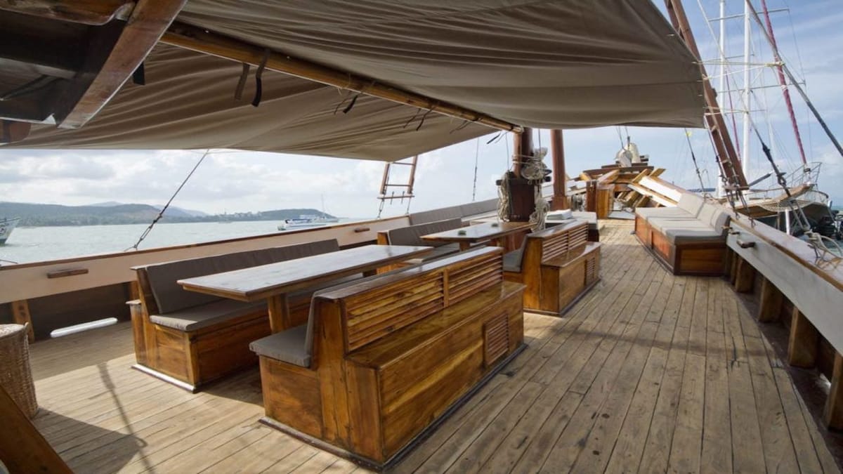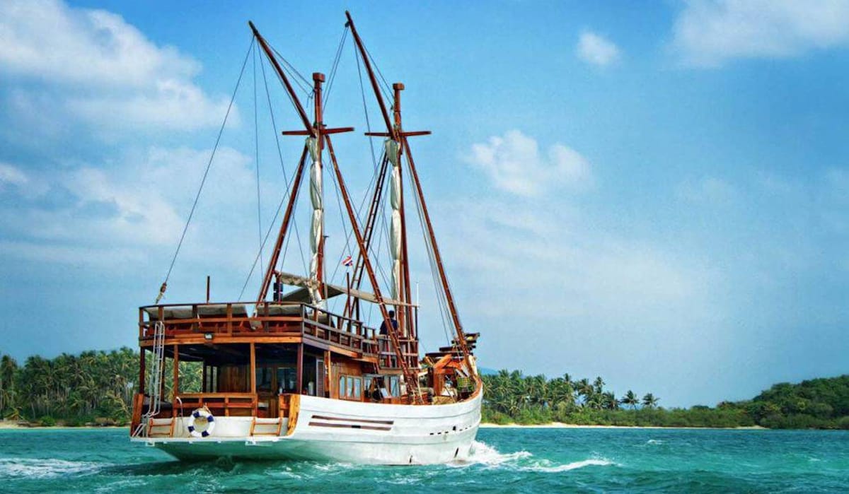 Explore the stunning Gulf of Thailand onboard a traditional two-masted Indonesian sailing ship.