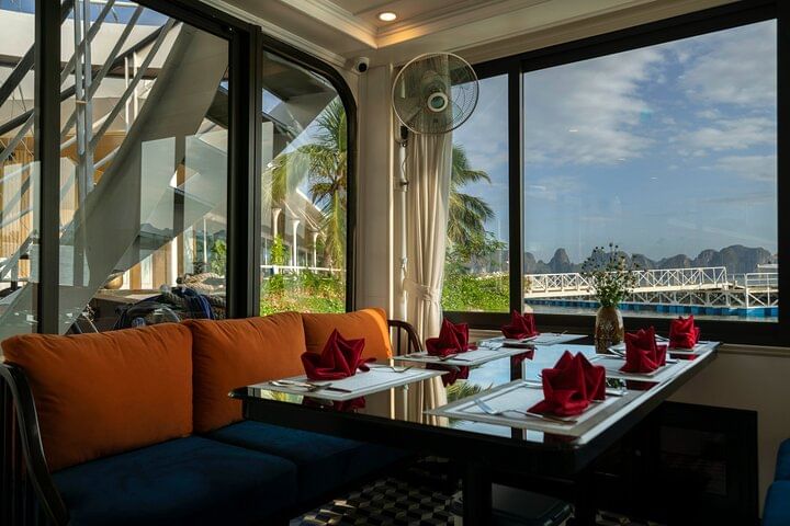 Our day on the luxury cruise through Hạ Long in Vietnam was quite memorable, especially while sailing past the iconic limestone karsts that seemed to rise straight from the emerald waters. We appreciated the well-planned itinerary that allowed us to soak in the scenic highlights, but the lunch service felt a bit rushed, which took away from the overall leisurely vibe. Despite that, the experience was a fantastic escape from our usual business routine, filled with stunning views and relaxing moments.