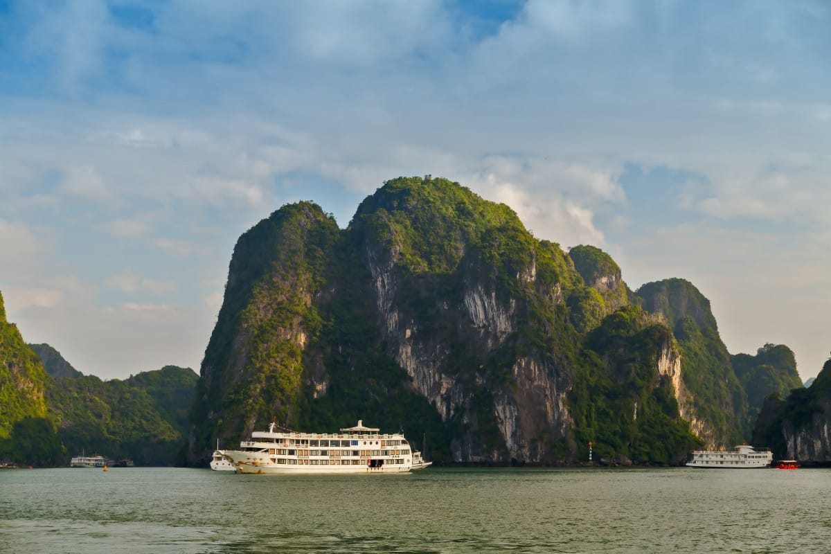 Halong Bay, located in the North East of Vietnam, is a remarkable site known for its crystal clear emerald waters and stunning limestone islands. Explore this unique location – which is a UNESCO World Natural Heritage Site – on a Halong Bay deluxe cruise with amazing food and mind-blowing scenery. Visit Luon Cave, go kayaking, stop by famous islands like Fighting Cocks and Stone Dogs, discover hidden private beaches and cool down with a relaxing swim. Onboard the Halong Bay luxury cruise ship, an abundant feast awaits letting you recharge before embarking on another Halong Bay adventure.