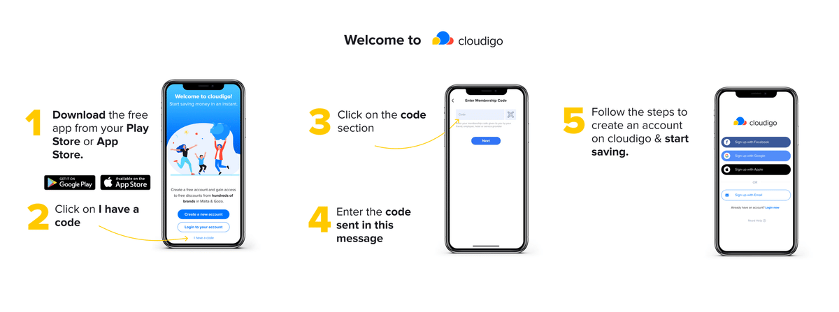 • Once you have made your booking, you will receive a code to be used to activate your savings. You first need to download the Cloudigo app from the Google Play Store or the App Store. The app can be downloaded by following this link: [ ] Once downloaded, access the app and click on 'I have a code'. Click on the code section and enter the code you would have received when you made your booking. Follow the steps indicated on the app to create an account on Cloudigo and start saving! To use the app, you need a smartphone and an internet connection. You have 30 days from the day you activate your account to enjoy the app and all your savings. If you wish to follow visual instructions on how to download the app and how to activate your savings, you can refer to this link: [ ] If you have any questions on how to download the app and activate your savings, please contact the provider by e-mail at [ ]
