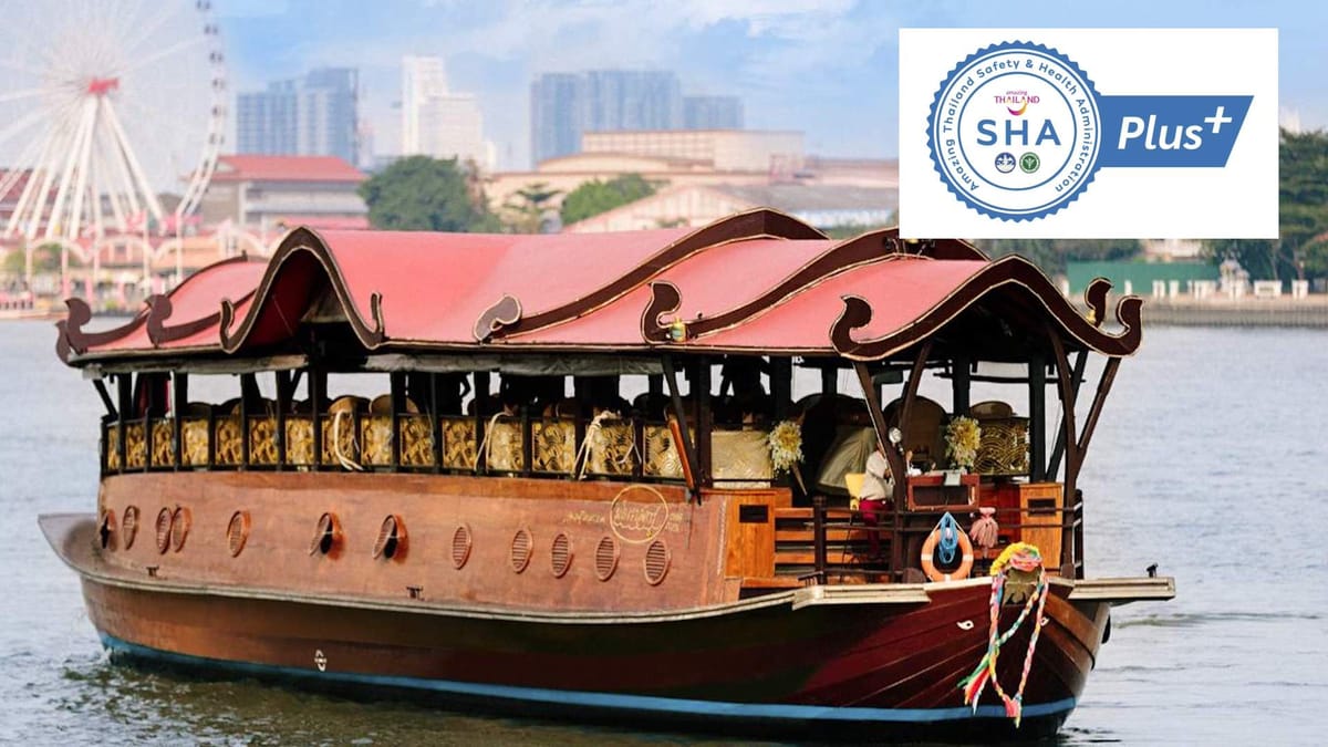Step aboard a beautifully restored antique rice barge and set sail on the majestic Chao Phraya River at dusk.
