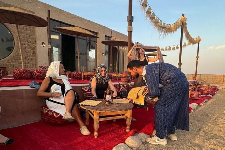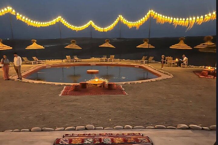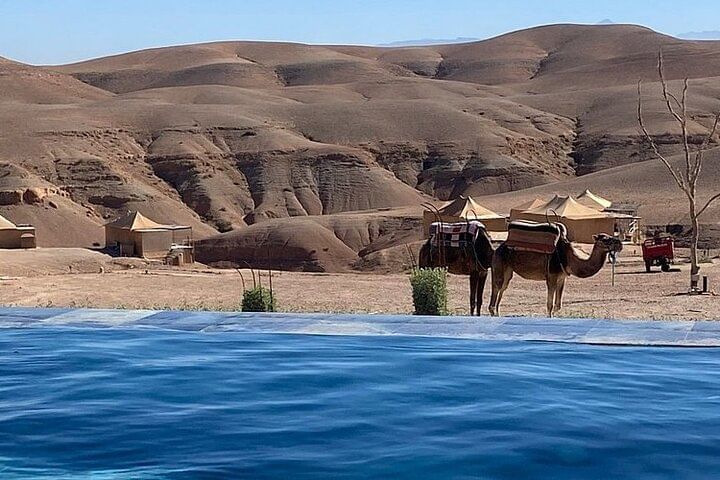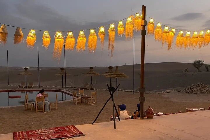As night falls, be mesmerized by a thrilling fire show and lose yourself in the enchanting rhythms of live Berber music. This experience combines luxury with purpose, offering more than just a tour—it's an ethical travel adventure. Enjoy a serene camel ride at dusk, connecting with the desert's timeless beauty. From the stunning scenery and delicious food to the vibrant entertainment and meaningful cultural impact, this Agafay Desert evening creates unforgettable memories that will last a lifetime.