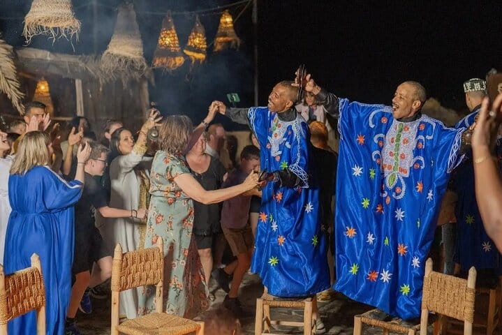 As night falls, be mesmerized by a thrilling fire show and lose yourself in the enchanting rhythms of live Berber music. This experience combines luxury with purpose, offering more than just a tour—it's an ethical travel adventure. Enjoy a serene camel ride at dusk, connecting with the desert's timeless beauty. From the stunning scenery and delicious food to the vibrant entertainment and meaningful cultural impact, this Agafay Desert evening creates unforgettable memories that will last a lifetime.