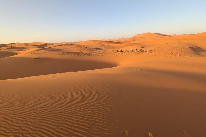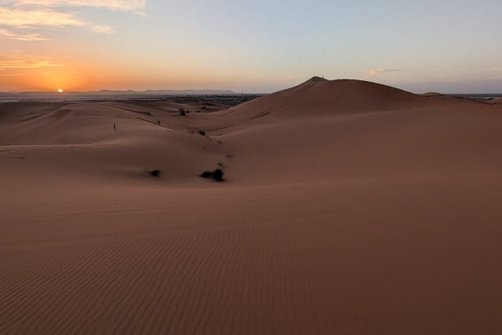 On this tour, you’ll head out into rolling sand dunes of Merzouga Desert in a private Jeep and take you in the dramatic landscape as the sun goes down. Accompanied by a local guide, You’ll drive to the sand dunes before sunset.