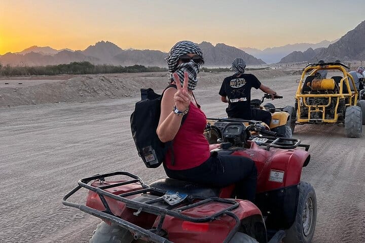 As soon as you arrive will listening to a short briefing to know how to drive and the a drive test and after that ride you quad deeper in the Hurghada desert for nearly 25Km each way,,,,
