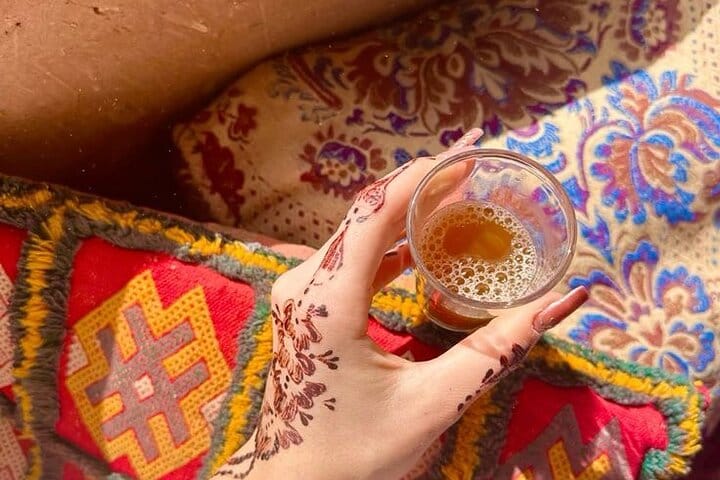 Immerse yourself in Moroccan culture with an intimate henna experience in an authentic Ouarzazate setting. Enjoy traditional henna art using natural, additive-free henna (suitable for all but those with henna allergies), accompanied by a relaxing mint tea ceremony and local pastries amidst cushions, carpets, and warm hospitality. This experience welcomes children and seniors, offering a beautiful and meaningful memory to take home.