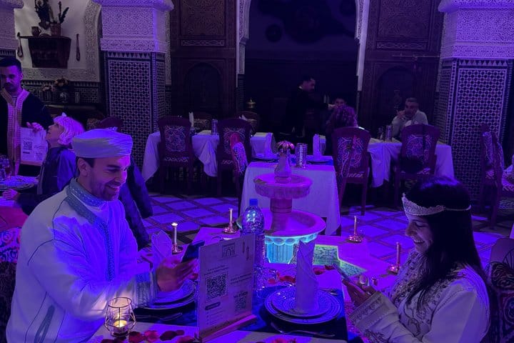 When finished, we will serve you a meal that includes 7 types of salad accompanied by a tagine, and at the end you will have seasonal fruits, and do not forget Moroccan tea and Fassian sweets.