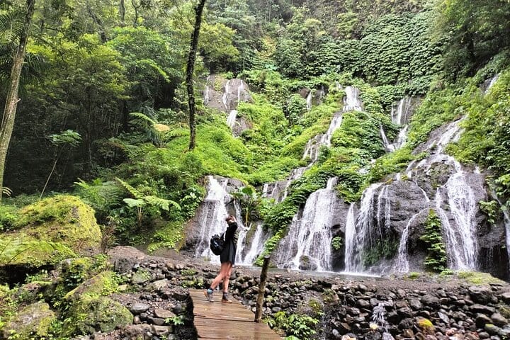 s one of Bali's most stunning natural attractions, featuring multiple streams of water cascading down a steep cliff amidst a dense jungle. The trek to reach it is an adventure in itself, offering breathtaking views and a sense of awe upon arrival.