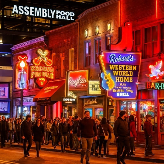 After your city tour - explore the new Fifth + Broadway for lunch (on own) at the Assembly Food Hall high above the Ryman Auditorium with a view of the city and activity in the Honky Tonks below you.