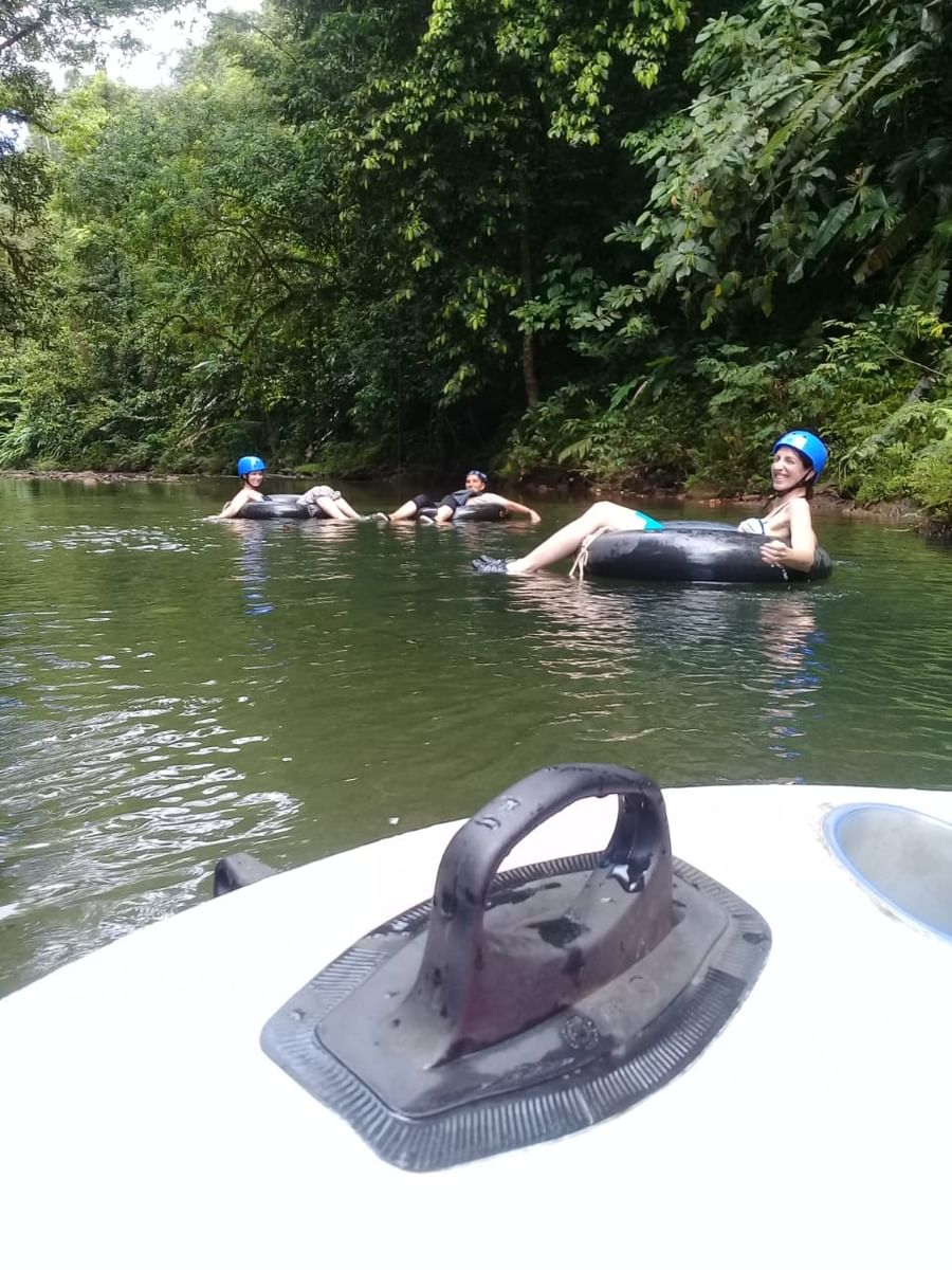 if you are staying in town, our Tour Guide will drive you from there., we will do some hiking through primary and secondary forest to our Family Farm.(Rio Agujitas eco Farm).This secluded part of the jungle is perfect for spotting all different species and enjoy Nature floting in a tube.