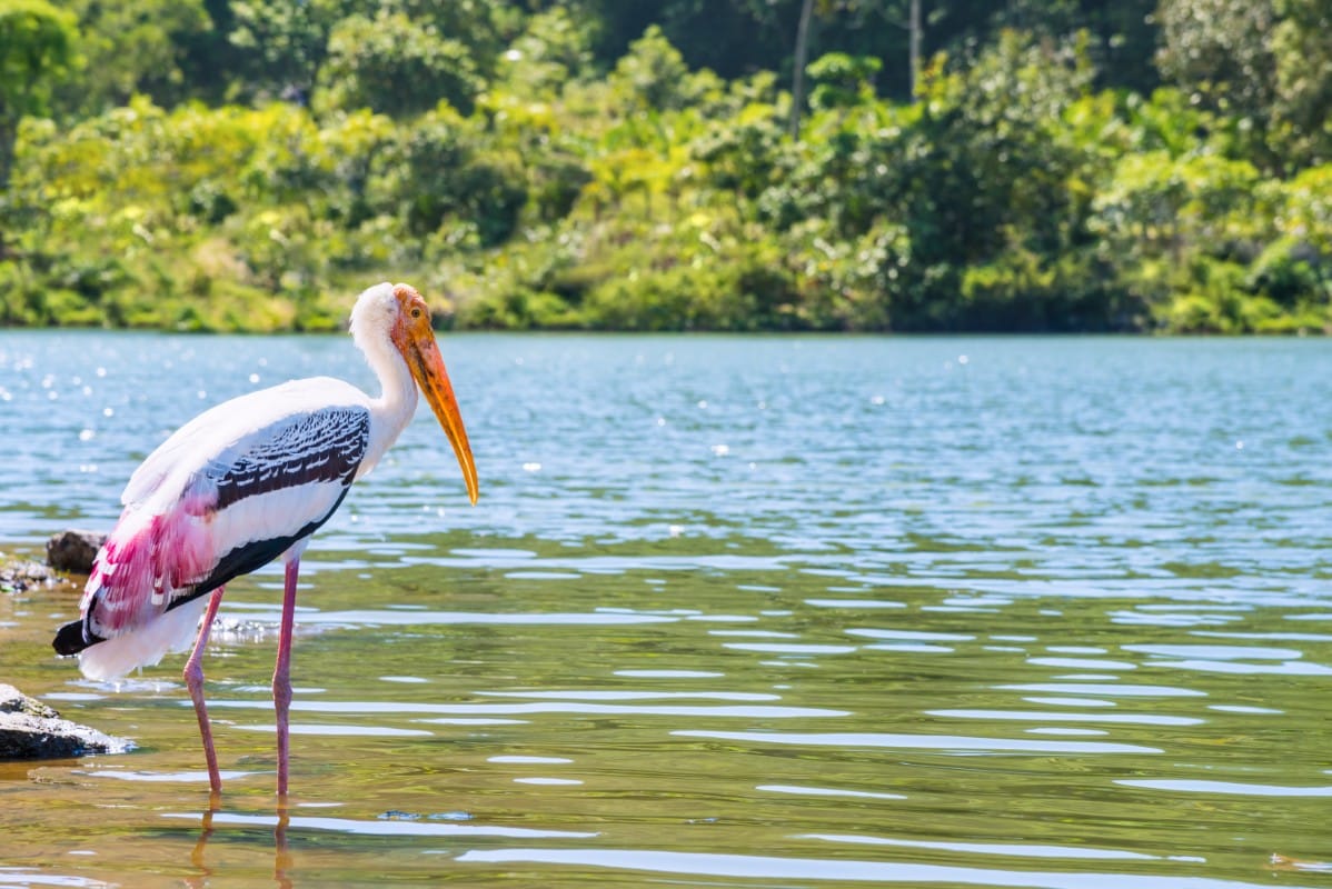 Between the lake and the cliffs in the west, large pythons inhabit the dense woodland, and can often be seen crossing the roads or dangling from trees.