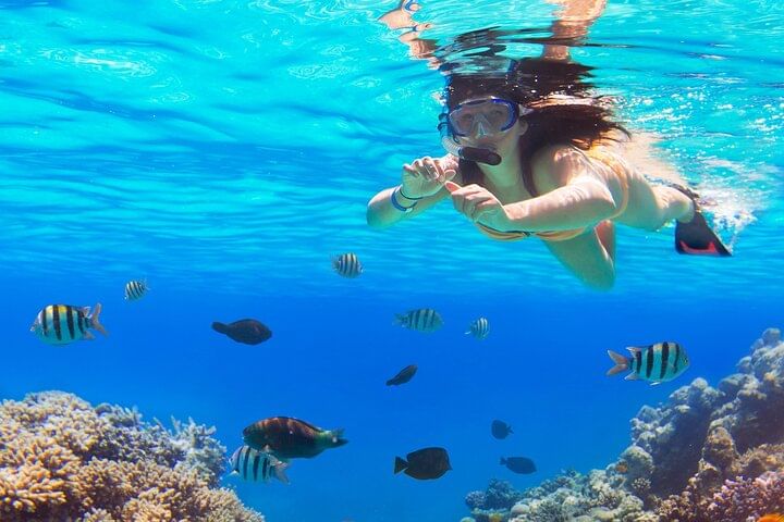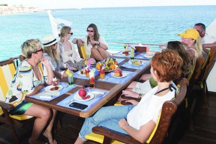 Spend an unforgettable day cruising around Orange Bay and experience the stunning beauty of the area and the vibrant underwater life of the Red Sea. You'll stop at two incredible snorkeling spots with the chance to see beautiful corals and exotic fish.