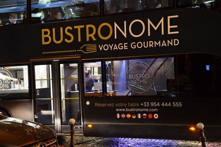 • Luxury double-decker bus experience in Paris offering dining and Paris sightseeing