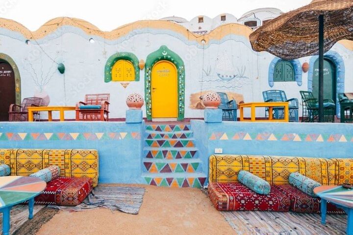 The final, vibrant stop on your Aswan tour is the captivating Nubian Village. Here, you'll be welcomed into a world rich in unique culture and tradition. Immerse yourself in the kaleidoscope of colors adorning the beautiful Nubian houses, each one a testament to the artistic spirit of the community. Wander through the village, admiring the delightful artwork that decorates homes and streets. This is an unparalleled opportunity to embrace the traditions and culture of the Nubian people, interact with the friendly native residents, and perhaps even find some exquisitely handcrafted gifts to take home as souvenirs. After experiencing the warmth and charm of the Nubian Village, you'll sail back along the serene Nile River, concluding your unforgettable day tour with a convenient drop-off at your accommodation in Aswan.