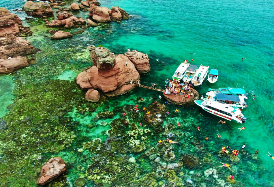 Dive into the crystal-clear waters of Phu Quoc and discover the island’s hidden marine treasures on our Three Islands Natural Coral Snorkeling Tour. This unforgettable journey takes you to the most stunning islands Hon Mong Tay island, Hon Gam Ghi, and Hon May Rut known for their vibrant coral reefs, soft white sand, and turquoise lagoons. Enjoy snorkeling among colorful fish and natural coral gardens, relax on pristine beaches, and capture breathtaking photos of paradise.