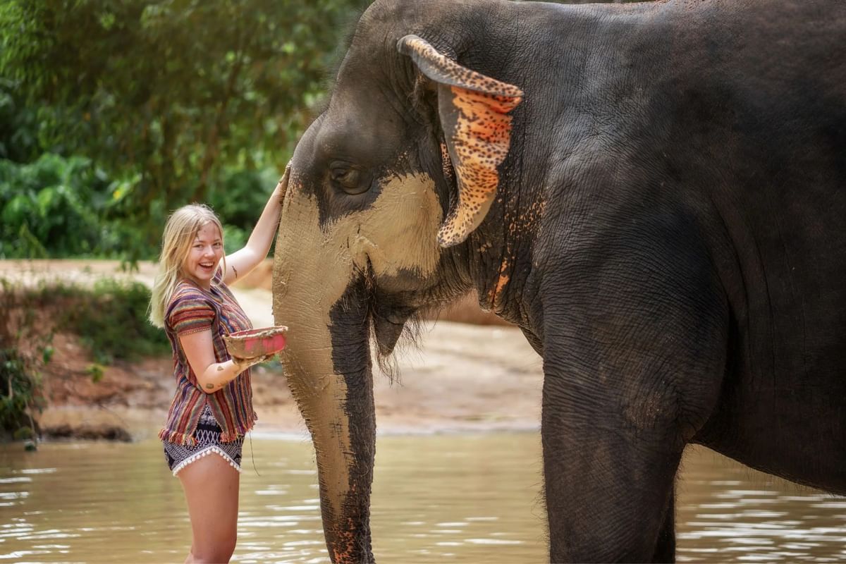After being allocated bananas and sugar cane to feed to the elephants, you will walk with your guide through the Sanctuary, where you will find free-roaming elephants and hear their individual stories. You can touch, feed, photograph, and interact with the elephants at your leisure while you learn about their lifestyle and behaviors.
