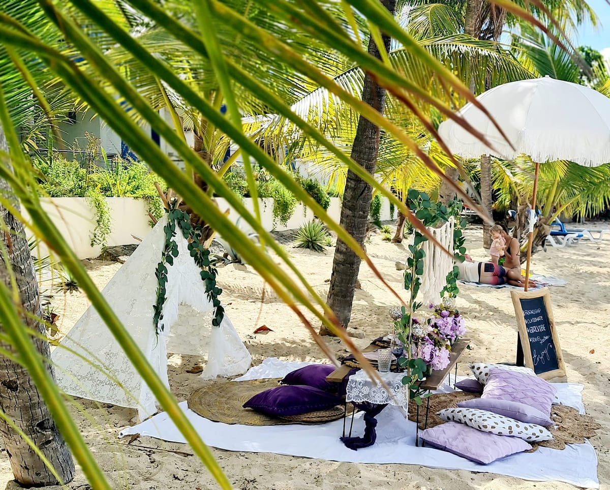 Indulge in an unforgettable escape with our Picnic in Paradise – an exclusive, open-air picnicking experience that elevates the timeless tradition of picnicking into a tropical dream getaway.Rooted in the romantic 19th-century custom of secluded outdoor feasts, these modern reimagining blends Caribbean beauty with European elegance. Designed for couples, families, or small groups, this retreat offers more than just tapas—it’s a memory in the making.Settle into your private beachside haven, complete with plush cushions and a breezy, tropical ambiance. Then, indulge in a carefully curated selection of island-inspired delicacies, artfully prepared for the ultimate Caribbean picnic experience. Savor Lightly Jerked Chicken Wraps—tender shredded chicken with a hint of Caribbean spice—alongside Liver Pâté with Brioche Toast Points, a rich and velvety pairing that exudes classic elegance. Enjoy Creamy Gouda Cheese Squares (because who doesn’t love cheese?) and elevate your experience with Champagne-Poached Lobster Medallions, a luxurious taste of the sea infused with sophistication. For refreshing balance, relish a Cucumber, Tomato & Onion Salad, crisp and vibrant with every bite. And to end on the sweetest note, indulge in Fruit Tarts, Fresh Strawberries, and Decadent Chocolate, because no Caribbean picnic is complete without a touch of indulgence.Swim in crystal-clear waters, bask in the sun on powdery white sands, and soak in the serenity of a secluded cove, where the gentle sounds of the ocean set the tone for your escape. It’s not just a picnic—it’s a moment of tropical bliss.After your picnic, Cool Down the Caribbean Way! Take a break from the sun and enjoy a true island treat, a refreshing fresh-cut coconut, prepared right in front of you. Sip it naturally for a burst of pure hydration packed with electrolytes, or elevate the experience with our signature coconut cocktail, a tropical twist you won’t forget! It’s more than a drink; it’s the taste of the Caribbean in its most authentic form, cool, fresh, and perfect for your vacation vibes.Ride back to your starting point along the scenic coastal roads, taking in the lush landscapes and vibrant colors that make St. Maarten a true paradise.3 Bullet Highlights· Two-hour private beach picnic experience with a stunning, styled setup· Beach leisure time to swim, sunbathe, read, or relax· Artfully prepared for the ultimate Caribbean picnic experience.
