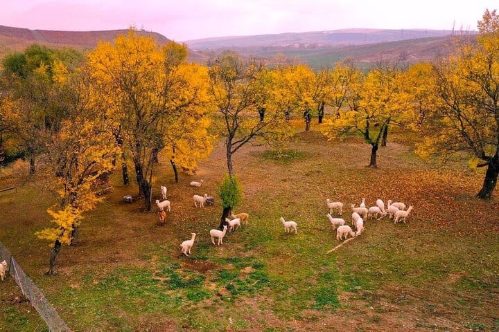 -Stop at: Shamakhi Alpaca Farm. Shamakhi is rich in mountain forests, springs and meadows, located in a moderate humidity zone, which is perfect for the comfortable living of these alpacas. “Alpaca Azerbaijan” is located in the Meysari village, just 120 km from Baku among picturesque mountains and green pastures. In the Shamakhi Mountains, at the alpaca farm, the animals and the green meadows will offer you and your children an entertaining and educational opportunity. The farm is equipped with a special playground with various attractions, so a trip to the farm will be fun for all members of the family. Tourists will be told about the characteristics and habits of alpacas and given a short briefing on safety on the farm