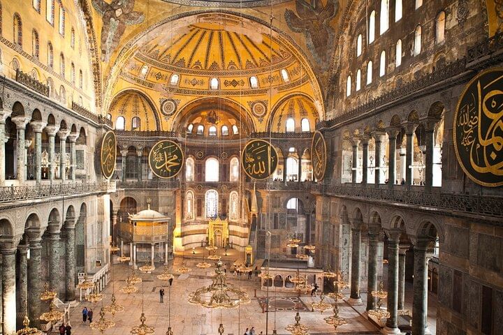 The Byzantine Church of Divine Wisdom. Originally built as an Orthodox basilica, it later was used as a mosque, and now is a museum. Built in 537 on the orders of the Byzantine Emperor Justinian, it served as the cathedral of Constantinople and was the largest cathedral in the world for nearly a thousand years. Upon the conquering of Constantinople by the Ottomans in 1453, it became a mosque and was used as such until 1931.