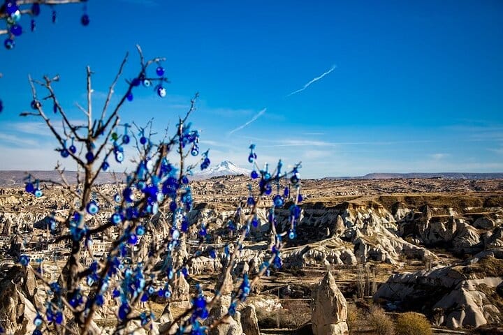 s one of the most visited photo points in Cappadocia, offering a magnificent view of mushroom-shaped rocks and the region's highest volcano