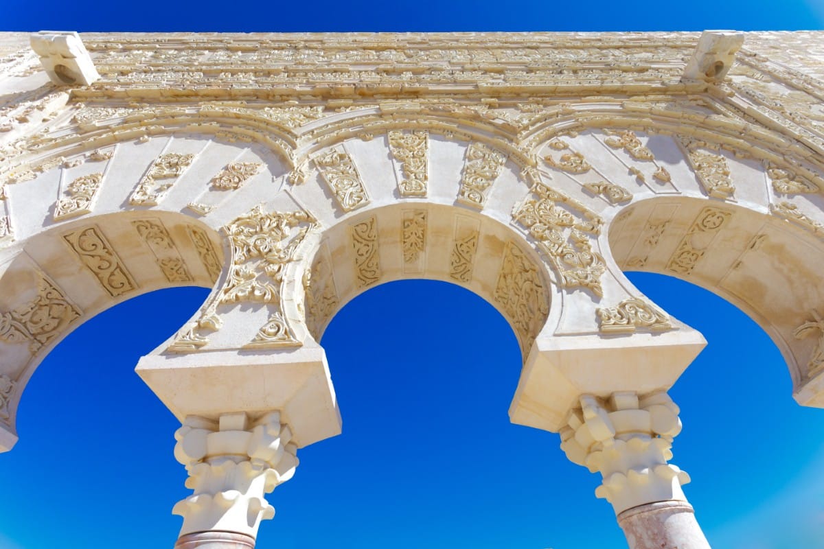 Discover a beautifully appointed palace with lavish interiors and walls adorned with elaborate mosaics.