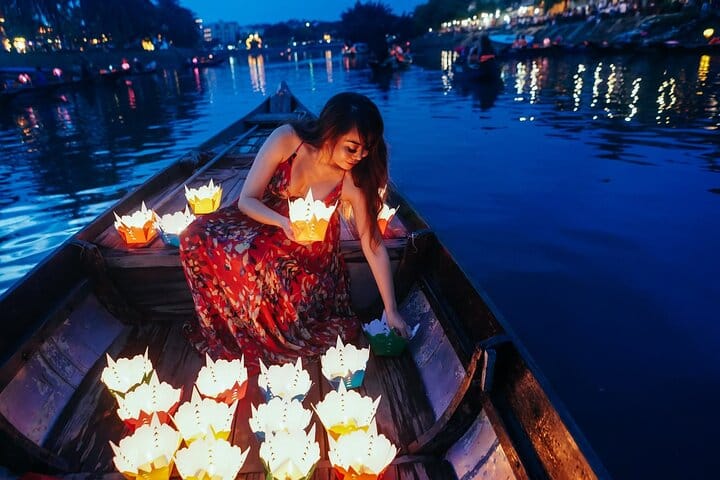 You will see Hoi An at night full of brilliant lanterns, and boats releasing lanterns on the river and take some photos while enjoying the tour.