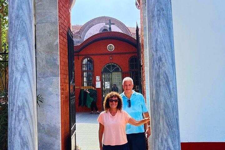 We will visit one of the most important churches on the island, Aya Yani Kilisesi. It's up to you whether you'd like to go inside, but even from the outside, you can admire its unique Greek Orthodox church architecture.