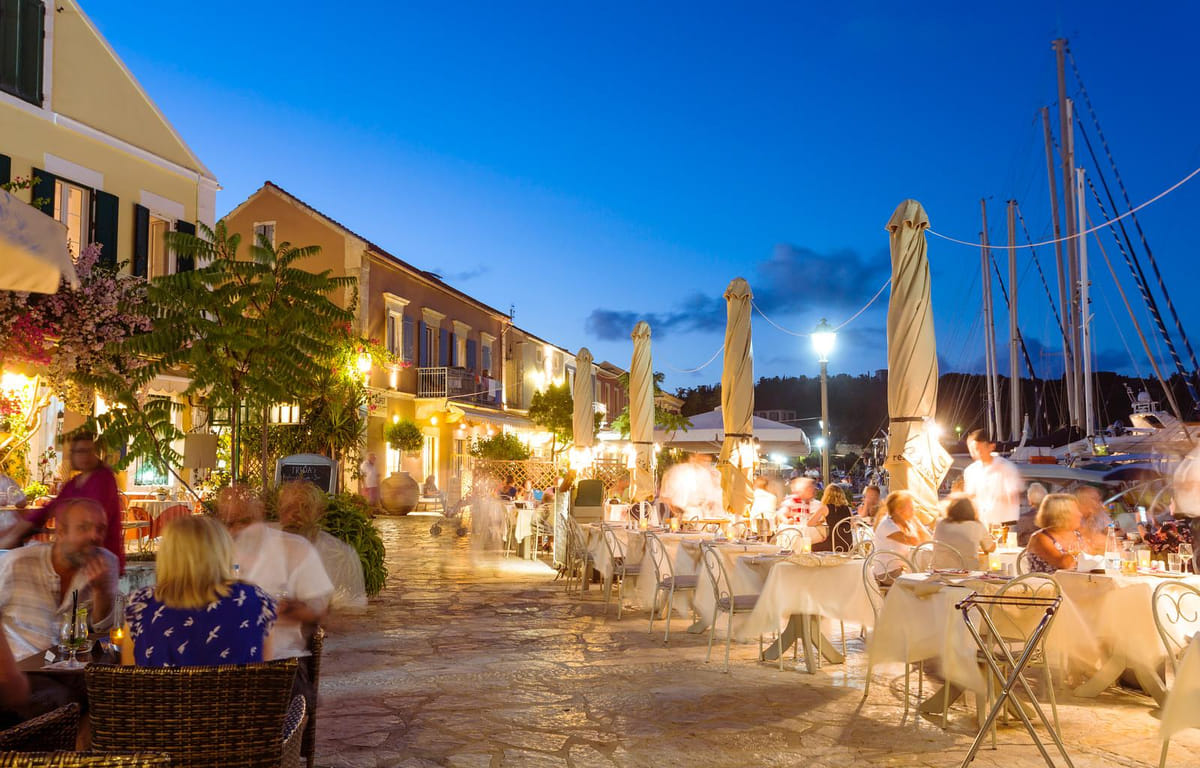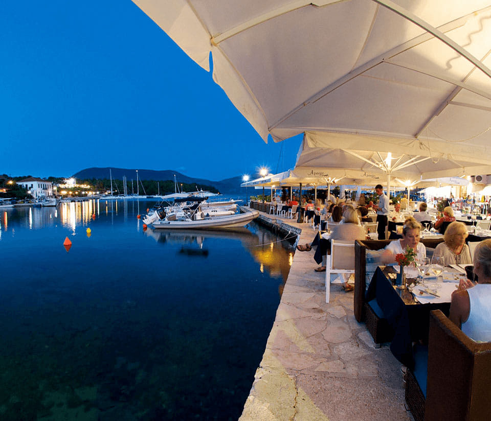 Arriving in Fiskardo early evening, you've three-hours to use as you choose. Fiskardo at night takes on a cosmopolitan atmosphere, where guests and celebrities stroll along the port with colourful anchored boats. The village offers a selection of bars and restaurants where you can take your dinner or just get a drink, have fun or relax!