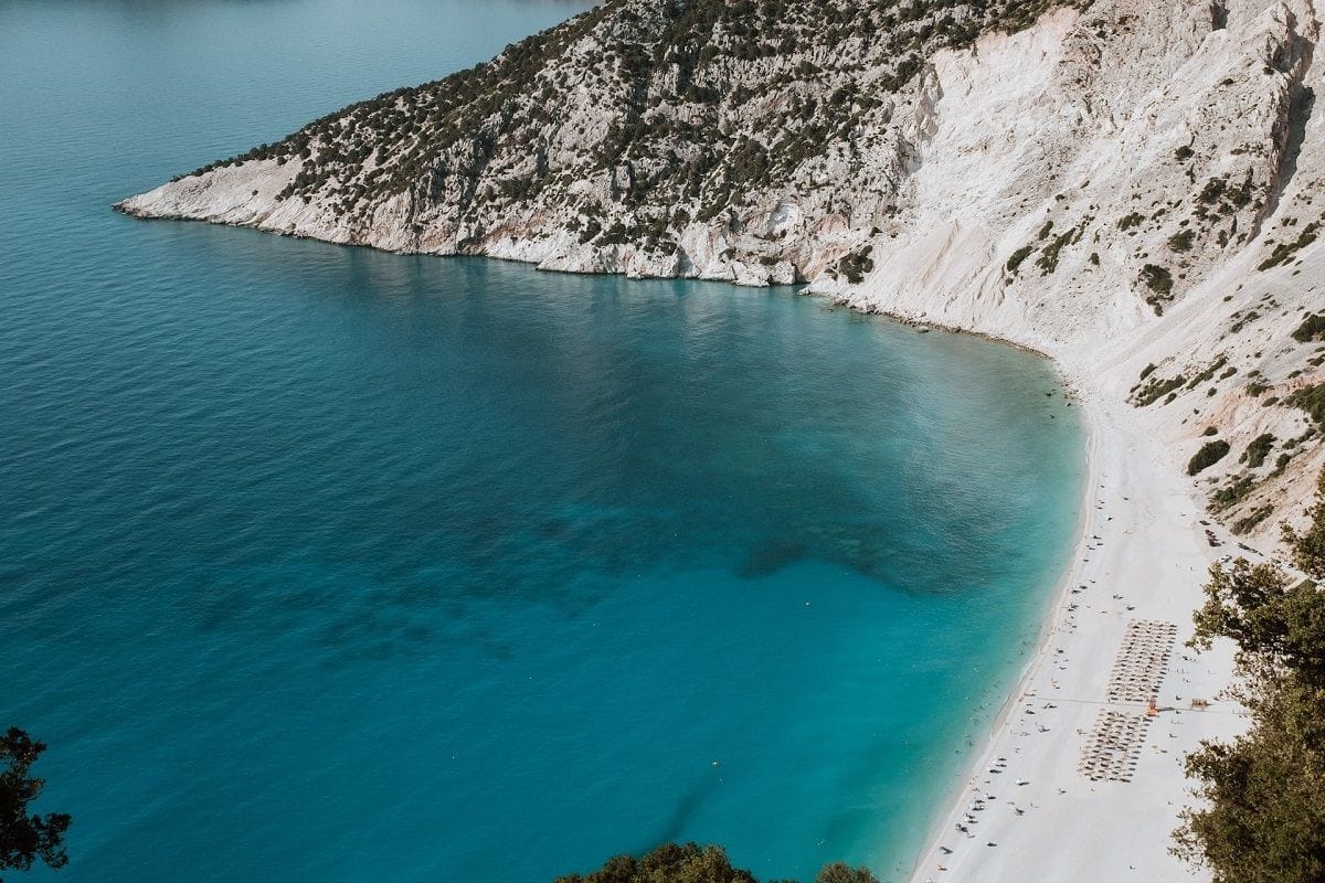 On your way back up, take some time to rest on the balcony overlooking the beach and savor the awe-inspiring view of Myrtos from above.
