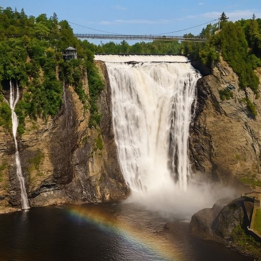 12:30 PM Lunch at Manoir Montmorency & Visit to Montmorency Falls Park Savor a delicious meal at Manoir Montmorency, followed by a visit to the spectacular Montmorency Falls—1.5 times higher than Niagara Falls! Cross the suspended bridge for breathtaking views of the St. Lawrence River.