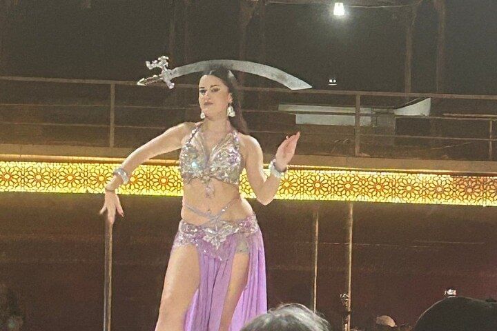 After your adventure, relax at our authentic Bedouin-style desert camp featuring live entertainment including the Tanoura dance, fire show, and belly dance performances. Immerse yourself in Arabic culture with henna painting, shisha, traditional costumes, and a mouth-watering BBQ buffet dinner under the stars.